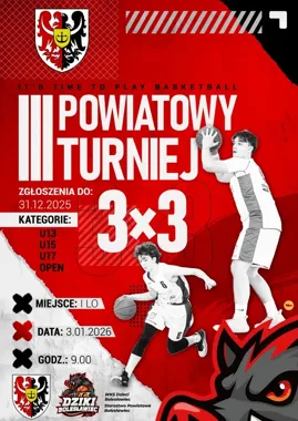 Turniej odbywa się pod nazwą III Powiatowy Turniej Koszykówki 3×3 i skierowany jest do drużyn w kategoriach U13, U15, U17 oraz OPEN (bez ograniczeń wiekowych). Zgłoszenia przyjmowane są do 31 grudnia 2025 r. Impreza zaplanowana jest w szkolnej hali, a organizatorzy podkreślają, że formuła 3×3 premiuje szybkość i kreatywność na boisku - mecze są krótsze, ale bardziej intensywne, co sprzyja widowiskowości.
