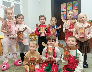 Reniferowe rzeźby w MDK w Bolesławcu - dzieci z warsztatów zrobiły papierowe poroża